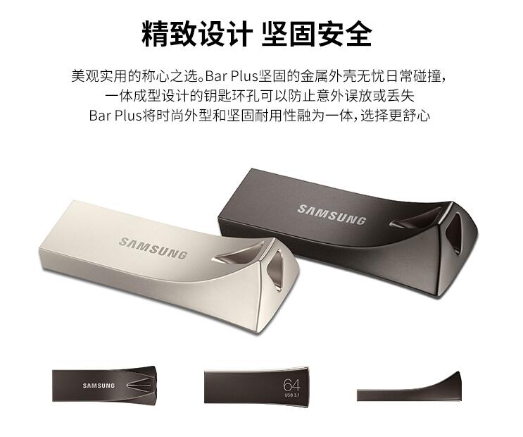 三星優(yōu)盤64GB USB3.1 U盤 BAR升級版+高速汽車載歌曲金屬外殼精致
