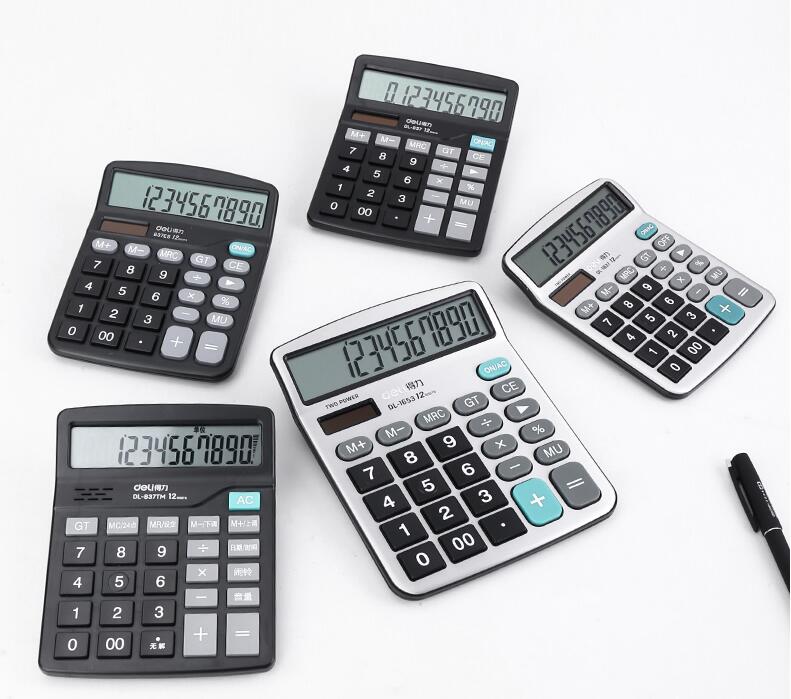 得力837計(jì)算器辦公用會(huì)計(jì)專(zhuān)用太陽(yáng)能學(xué)生用帶語(yǔ)音大學(xué)財(cái)務(wù)小號(hào)便攜雙電源計(jì)算機(jī)器按鍵文具辦公用品大號(hào)